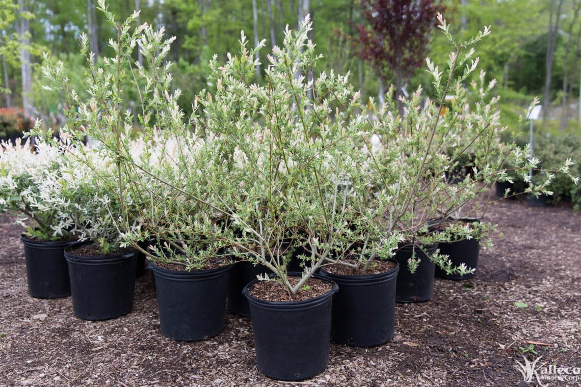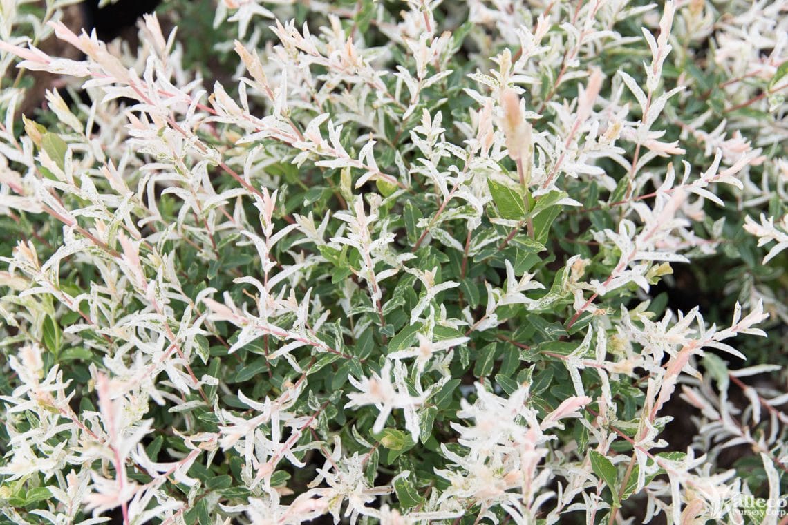 Once established, tri-color willows grow quickly, up to 7’-9’ feet tall and wide. Regular pruning should be performed to maintain a smaller shape, ideally after new growth in the spring. The fast growth habit means it does best with plenty of space to spread out. Tri-color willows are also ideal for hedges and barriers due to their height and wide growing habit. The pace of their growth means you can expect a full hedge or barrier in the first few growing seasons.